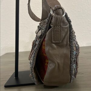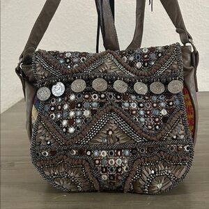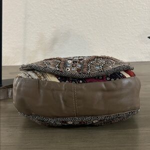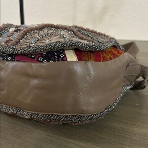 Free People Sienna Beaded Embellished Crossbody Bag Brown Leather Sienna Beaded Embellished Bohemian Festival Crossbody Bag Authentic leather with colorful patchwork, beading + embellished detailing allover Inside has one zip pocket Foldover flap with magnet closure