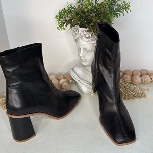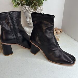 MEASUREMENTS: Heel Height: 2 3⁄4 in Weight: 11 oz Shaft: 7 3⁄4 in Product measurements were taken using size EU 39.5)US Women's 9.5,width M. Please note that measurements may vary by size. Weight of footwear is based on a single item, not a pair. PRODUCT FEATURES YOU’LL LOVE: Leather upper. Leather lining and insole. Zipper closure. Square toe. Chunky heel. Synthetic outsole. Imported. ABOUT FREE PEOPLE At Free People, they draw, design, cut, and sew for the FP girl. From hand-stitched seams to romantic lace inserts, she will find love and care in the vintage-inspired details. The brand is consistently developing exclusive washes and distressing techniques to give each style its coveted modern edge. The goal is to gather inspiration from the past and interpret it for the modern girl in a way that makes her feel beautiful and one-of-a-kind. NIB SZ 9.5