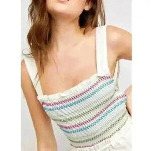 Free People Sienna Smocked Jumpsuit Bright stitching embellishes this lightweight open-back smocked jumpsuit. Squareneck. Self-tie crisscross straps. Drawstring rope belt waist. Smocked bodice. On-seam pockets. Elasticized hem.53% linen, 47% viscose.