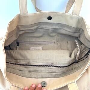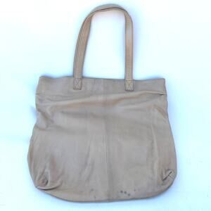 Free People Sierra Leather Woven Removable Clutch Tote Purse Beige Bag Tan