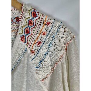 Free People Siesta Fiesta Crochet Embroidered White Bohemian Blouse Top Small