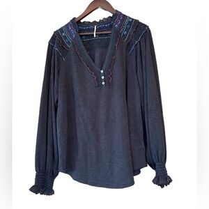 Free People Siesta Fiesta Embroidered Henley Top