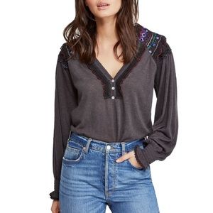 Free People Siesta Fiesta Embroidered Henley/tunic. Colorfully embroidered back home adds vintage flair to this boho chic tunic. V-neck, long sleeves. I’d love to accept your reasonable offer;)