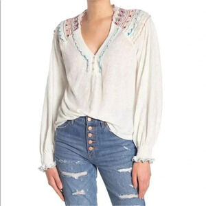 New without tags. Free People Siesta Fiesta Embroidered Tunic Top. A colorfully embroidered back yoke adds a pop of vintage sophistication to this lightweight, flowy tunic. Embroideried. White color. Henley.