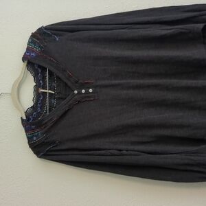 Free People Siesta Fiesta Top In Washed Black Tunic Boho Henley Popover