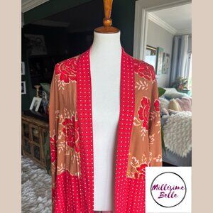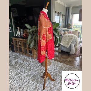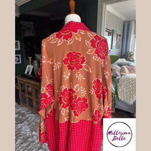 Free People Silk Red and Tan Kimono. New with tags! Great to wear with jeans or over a white dress. #poshmark