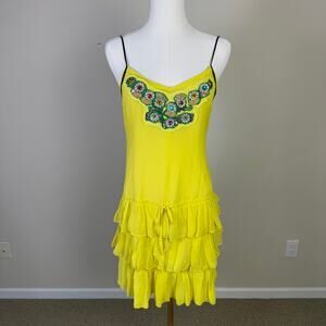 Free People Silk Rhinestone Tiered Ruffle Crinkle Mini Dress US Women's XS