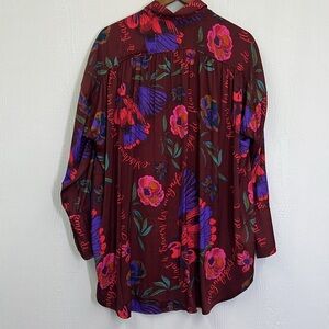 Free People - Silky NIghts Fun Print Button Down Long Sleeve Oversized Blouse S
