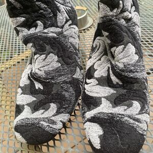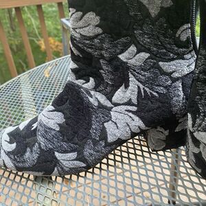 Free People Silver Black Leaf Scrolls Tapestry Textile Zip Booties US 6.5