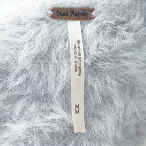 Free People Silver Cloud Gray Faux Fur Medium Open Cardigan Sweater EUC