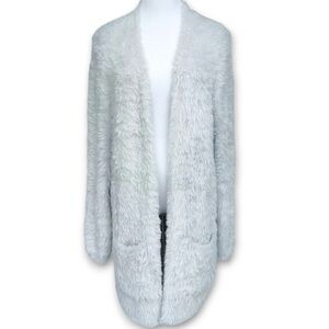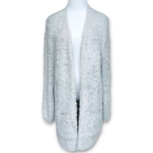 Free People Silver Cloud Gray Faux Fur Medium Open Cardigan Sweater