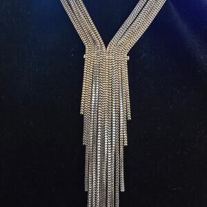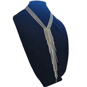Authentic Free People silver-tone fringe necklace featuring cascading layered chains and a dramatic Y-drop silhouette. Adjustable clasp for perfect fit. Adds boho-lux edge to any outfit.
