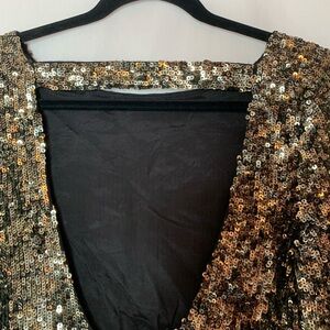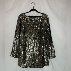 Shimmering silver sequin mini dress. Long sleeves. Open back design. Perfect for a night out. Perfect condition!