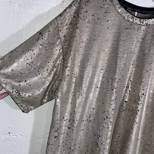 Free People Silver Sequin Mini Dress Size Large Oversized Tunic Party Holiday