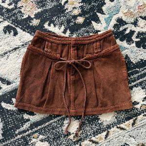 Details: This mini skirt from the We The Free collection features a low-rise and a relaxed fit. It has a zip fly with hook-and-bar closure, a dropped drawstring closure, and side pockets. The skirt is designed with soft corduroy fabrication and pleating for added shape.
