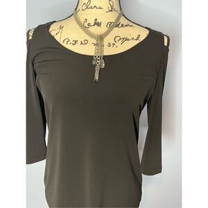 Free People Silver-Tone Mesh Chain Weave Necklace with Crystal Adorned Hanging C