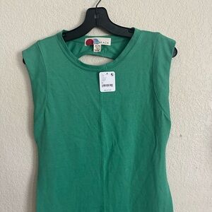 Features: Capped sleeves, tucked pleating at the sides, back cutout detail