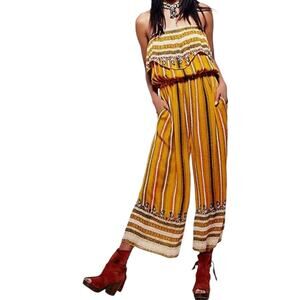 Free People Simone Flounce Strapless Pocket Wide Leg Jumpsuit Size Small