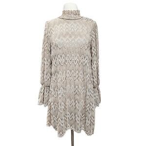 Free People Simone Lace Overlay Dress Long Sleeve Beige Tan Cream Size Small