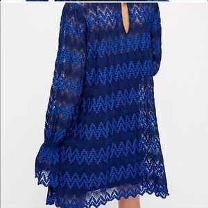 Free People Simone Lace cobalt blue dress flutter sleeve sz small