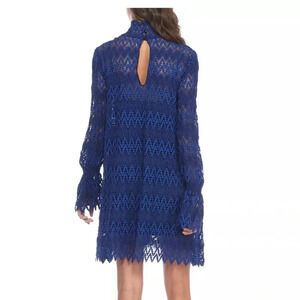 Free People Simone Mock Neck Dress Chevron Lace Cobalt Royal Blue Size M