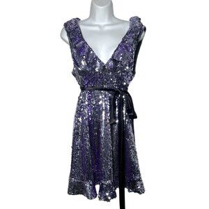 Free People Siren Sequin Mini Dress Sparkly Purple Silver with Velvet Tie Size 6