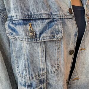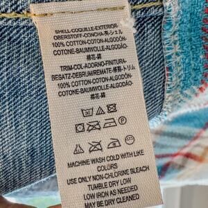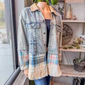 Free People Sirius Cotton Plaid-Contrast Mixed Denim Oversized Jacket, M/L