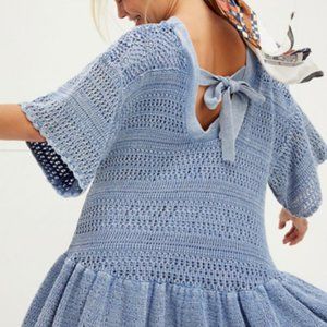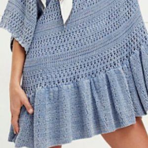 Free People Sistine Crochet Knit Oversized Mini Dress Indigo