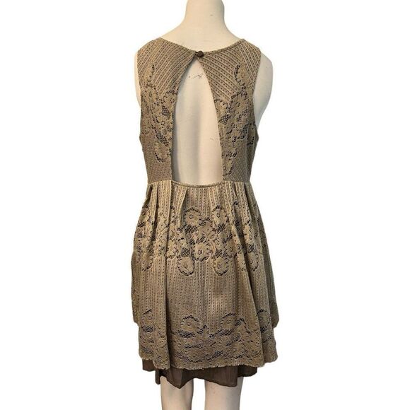 Free People Size 10 Taupe Rocco Open Back Lace Overlay Sleeveless Dress