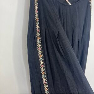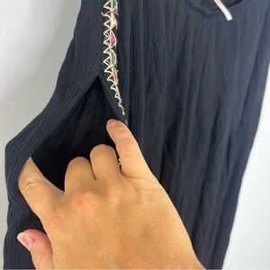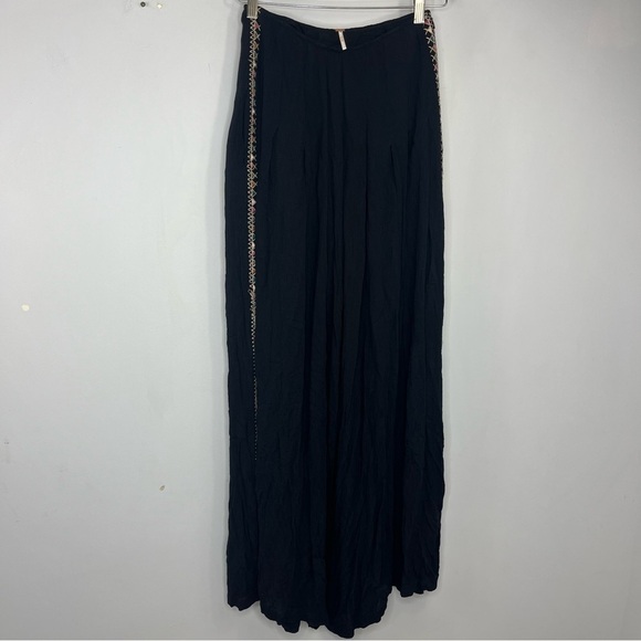 Free People Size 2 Santoshi Black Wide Leg Embroidered Boho Gauzy Pants B5