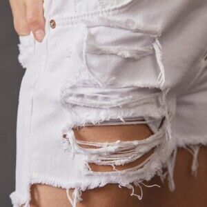 Free People Size 24 Maggie Button Fly Mid-Rise White Distressed Denim NEW Shorts