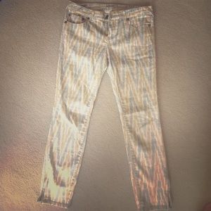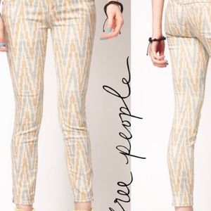 Cropped Free People Printed Jeans with zipper detail at the ankle..Size 28, stretchy and comfortable!