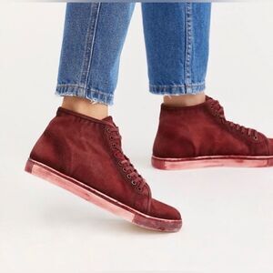 Free People Size 38 Brand New River Run Maroon Distressed High Top Sneakers