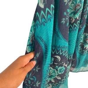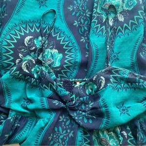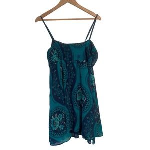 Free People Size L Eternal Spring Babydoll Boho Mini Dress Blue Floral