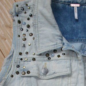 Free People Size LG Sleevless Studded Jean Jacket