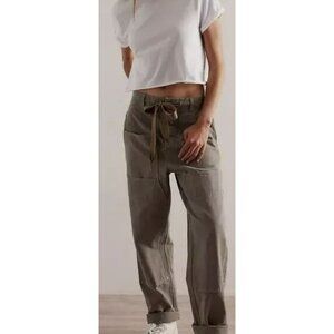 Free People Size Large Hayden Olive Green Cargo Pants Tie Elastic Pants New