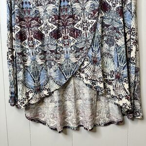 Free People Size Large Nouveau Blouse Blue Boho Top Keyhole Back Lace Faux Wrap