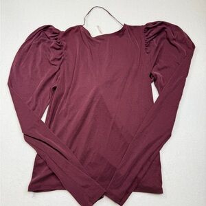 Free People Size M Burgundy Long Sleeve Knot Blouse