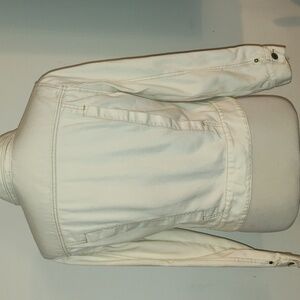 Free People Size M Cream Beige Long Sleeve Button Up Denim Jacket