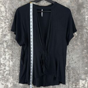 Free People Size M Faux Wrap Stretch Casual Top Black Short Sleeve Round Neck