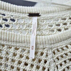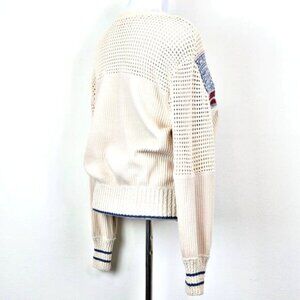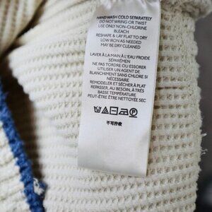 Free People Size M Geo Party Sweater Pullover Waffle Knit Ivory Blue Orange