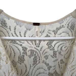 Free People Size Medium Cream Dress Full Lace Long Puff Sleeves Sheer Back
