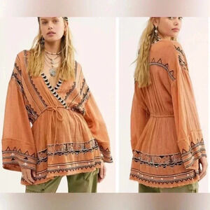 Free People Size Medium Terracotta Saffron Embroidered Tunic