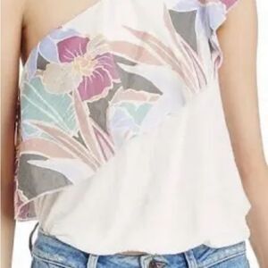 Free People Size S Annka Bubble Ivory Floral Ruffle One Shoulder Top NWT Sz S