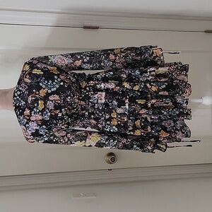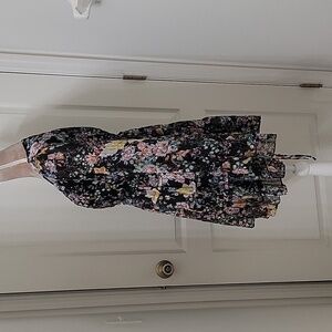 Free People Size S "Closer to the Heart" Black with Floral Mini Dress, Tiered