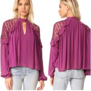 Free People Size SM Little Bit of Love Blouse Raspberry Purple Artsy Boho LSU