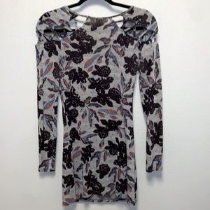Free People Size Small Gray Floral Bodycon Stretchy Dress: 3072