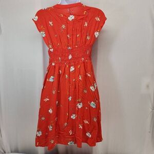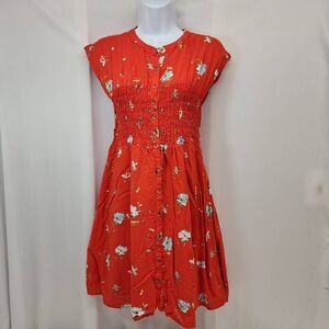 Free People Size Small Greatest Day Orange Floral Print Smocked Mini Dress T