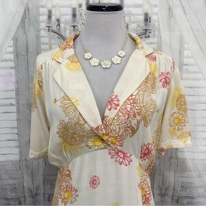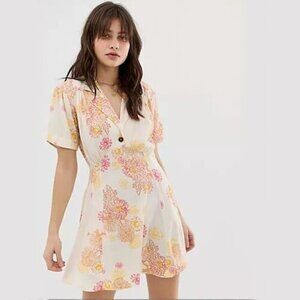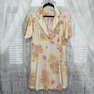 Free People Size Small Hawaii Mini Dress Swing Skirt V Neck Short Sleeve Pockets