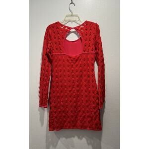 Free People Size Small Wild Thing Red Knit Crochet Dress Long Sleeve Date Party